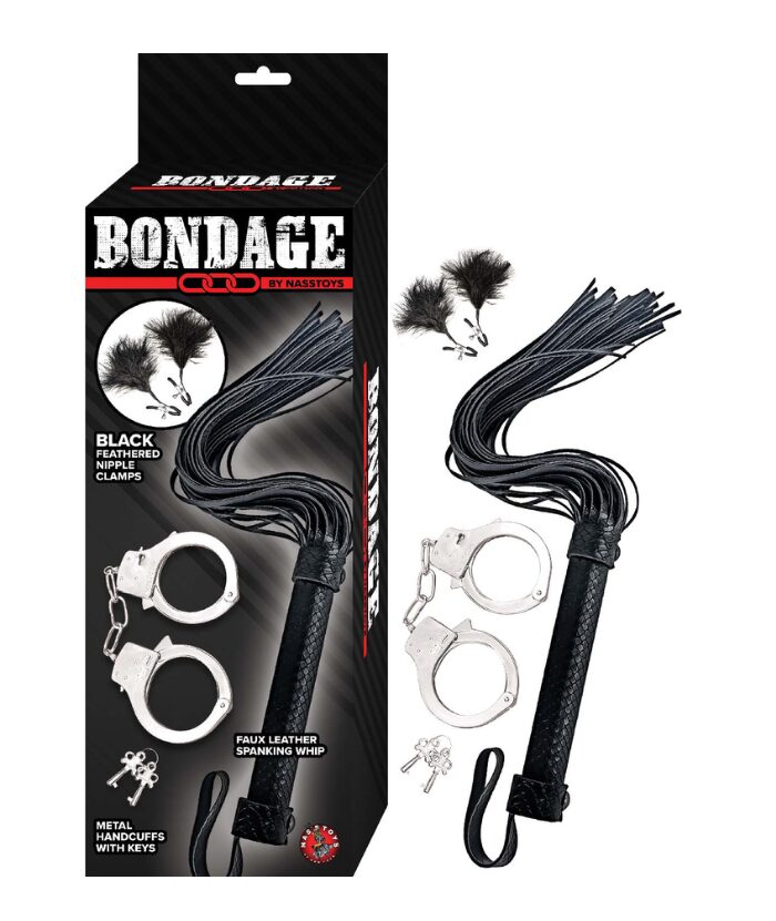 Presentamos el Kit de Bondage Nasstoys: la combinación perfecta de exploración lúdica y sensaciones emocionantes, diseñado especialmente para principiantes. Libera tus deseos y sumérgete en el mundo del bondage con confianza gracias a este kit cuidadosamente seleccionado. Tanto si eres nuevo en el mundo del bondage como si eres un explorador experimentado, el Kit de Bondage Nasstoys es una excelente opción para quienes buscan una introducción suave. Descubre la emoción de la sujeción y el juego sensorial con este set cuidadosamente elaborado. Experimenta la emoción de estar atado con las esposas metálicas de liberación rápida incluidas. Estas esposas proporcionan una sujeción segura y fácil de quitar, garantizando seguridad y comodidad durante todo el juego. Eleva tu experiencia sensorial con las tentadoras pinzas para pezones adornadas con suaves plumas rojas. Perfectas para añadir una capa extra de sensación, estas pinzas te permiten explorar el delicioso equilibrio entre el placer y un toque suave y provocador. Libera tus deseos más íntimos con el látigo de piel sintética, diseñado para ofrecerte una satisfactoria combinación de placer y diversión. El suave roce del látigo contra la piel añade un toque excitante a tus momentos íntimos. El Kit de Bondage Nasstoys es compacto y discreto, ideal para viajes o aventuras espontáneas. Dale un toque de emoción a cualquier entorno con este set fácil de guardar y transportar